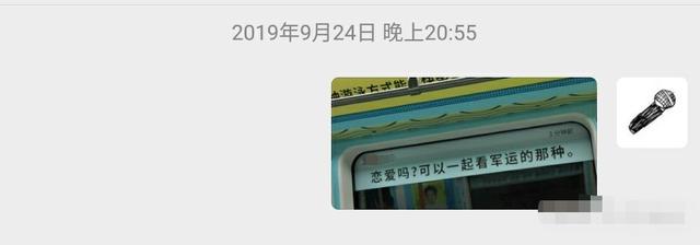 回来的地铁上,正是武汉的军运会,灿灿看到一个广告,偷偷拍下来,然后发给坐在灿灿旁边的她,灿灿告诉她有人跟你发消息,你看一下,她看了以后脸蛋一下子就红了。